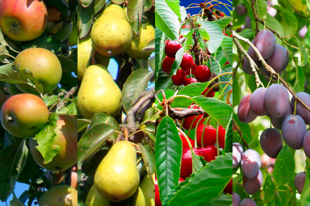 Äpfel, Birnen, Kirschen, Pflaumen, Zwetschgen, Johannisbeeren, Erdbeeren, Himbeeren.